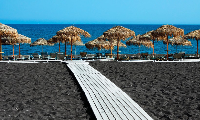 Острова Санторини известны своими разноцветными песками. Многие туристы приезжают сюда именно за этим. Известны пляжи с красным, белым и черным песком.
