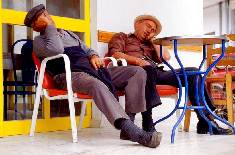 Как это странно не прозвучит, но греки достаточно ленивая нация. Это отражается во всех сферах жизни. Вот ходили мы по улицам, ездили по островам вдоль и поперек, а такое ощущение, что всех вокруг просто заставляют работать. Большинство организаций прерываются в работе из-за жары. Так называемая сиеста длится примерно с 12.00 до 16.00. Я понимаю, когда вне курортной зоны такие часы установлены, но внутри центральных территорий туристических курортов, где наплыв и поток людей не кончается никогда - для меня это странно. И ладно бы, если бы при таких темпах работы был у населения отличный уровень жизни. Но Греция страна, которая давно переживает экономический кризис.