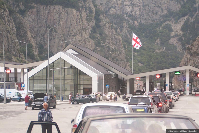 Про границу знайте, автомобильная– одна!!! Это КПП Дарьяли – Верхний Ларс. Не вставайте в очередь за фурами, они могут стоять неделями, езжайте за легковыми машинами! В интернете можно отслеживать ситуацию он-лайн, зайдите и посмотрите не перекрыта ли граница на время селя, камнепада или лавины, чтобы не стоять там. В сезон приготовьтесь стоять часами (порой до 8 часов), т.к. поток очень большой, во вне сезона наш максимум был 2 часа и то, из-за того, что перед нами машину заставили разгрузить полностью.