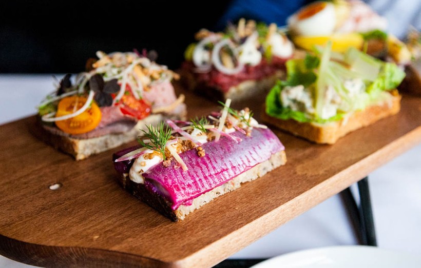 Его вкус тоже необыкновенный, его даже сложно описать. Оно добавляет хлебу нежности и одновременно лёгкой пикантности. А вот наполнение бутерброда может быть любым. Я обычно выбирала рыбу, так как здесь она вкуснейшая, нежная, великолепная. предпочтение отдавала лососю. Но это могут быть креветки, рубленые яйца, маринованные огурцы, мясо или вообще все вместе.Кстати, смёрребрёды подаются как в небольших забегаловках, так и в элитных ресторанах. При этом вкус великолепен и в тех, и в других.