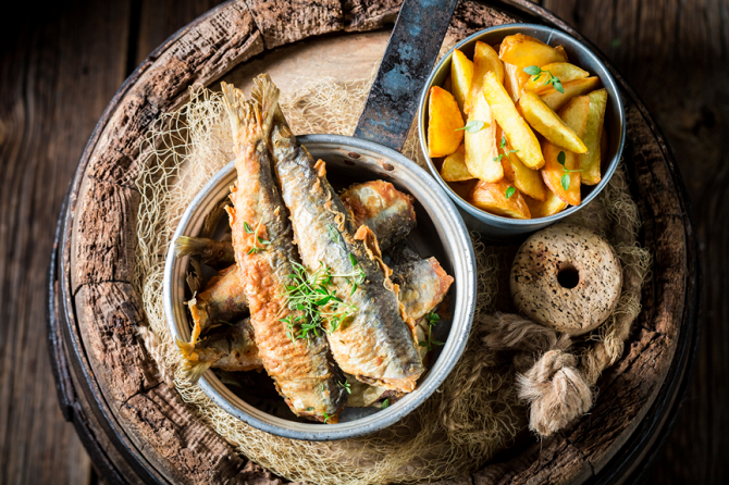 Вот это блюдо рекомендую попробовать, несмотря на то, что это просто селедка, обжаренная с луком. Для россиян, кстати, непривычное блюдо, так как в РФ сельдь обычно предпочитают в солёном виде. Но поверьте, жареная, она просто божественна. Возможно, существуют какие-то секреты приготовления этого блюда, но в целом могу сказать, что датчане готовят максимально просто, без лишних изощрений, стараются, чтобы в еде был ощутим натуральный вкус продуктов, поэтому особых тайн тут наверняка нет. Подается блюдо весьма оригинально - на сосновой досочке красиво выложены кусочки обжаренной до корочки сельди с колечками сладкого лука. Ммм, божественно.