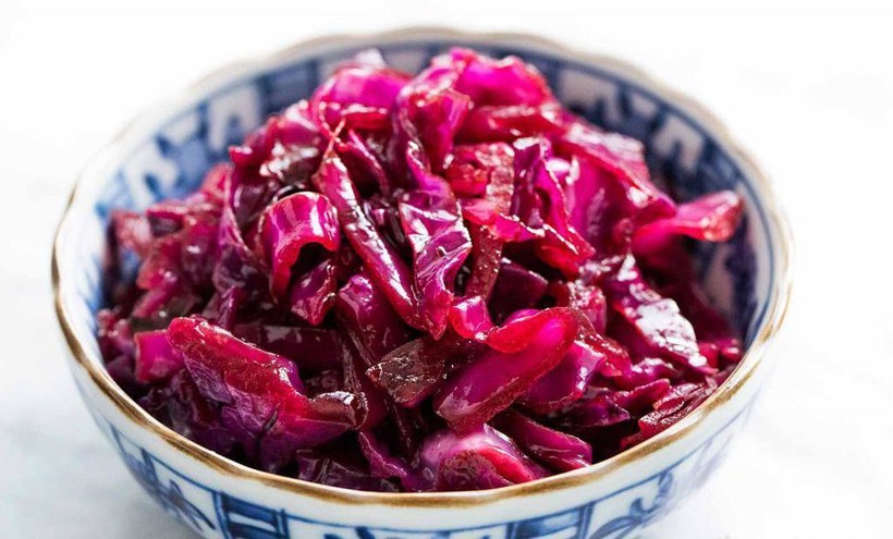 А это блюдо я, пожалуй, назову одним из самых необычных, что я пробовала в Дании. Это интересным способом тушёная краснокочанная капуста. Не знаю, что именно в нее добавляют при готовке, но уловила нотки гвоздики и кислинку уксуса, винного или яблочного - не удалось разобрать. При этом капуста сладкая, но подают ее к мясным блюдам, птице и дичи. Необыкновенное сочетание. Но я предпочитала есть Рёдкол в качестве основного блюда, чтобы не смешивать ее великолепный вкус с посторонними ароматами.