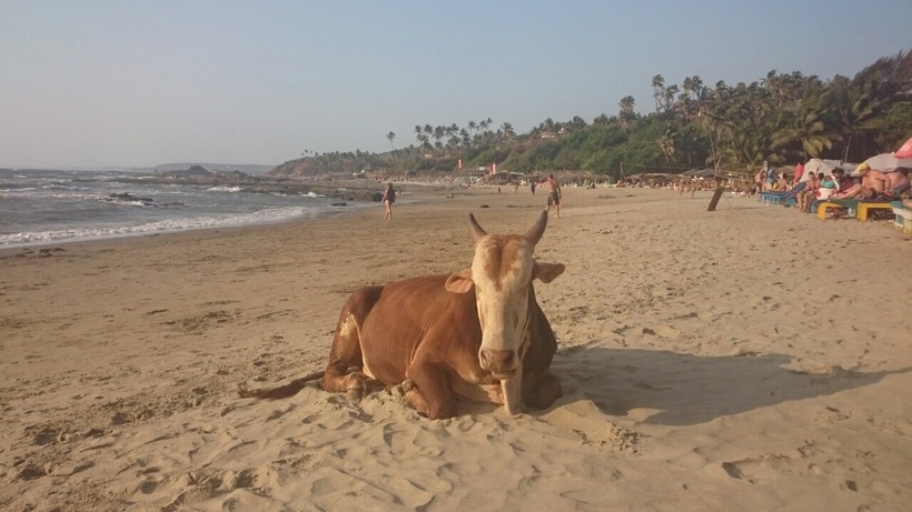 Могу сделать вывод, побывав практически на всех, что пляжи северной части штата преимущественно с серым и темно-желтым песком вулканического происхождения, из-за большого количества народа они более грязные. Здесь я встретила много бродячих собак и коров, которые в Индии считаются священными неприкосновенными животными. Но с другой стороны здесь много развлечений, шеков (пляжных кафе) и магазинов.