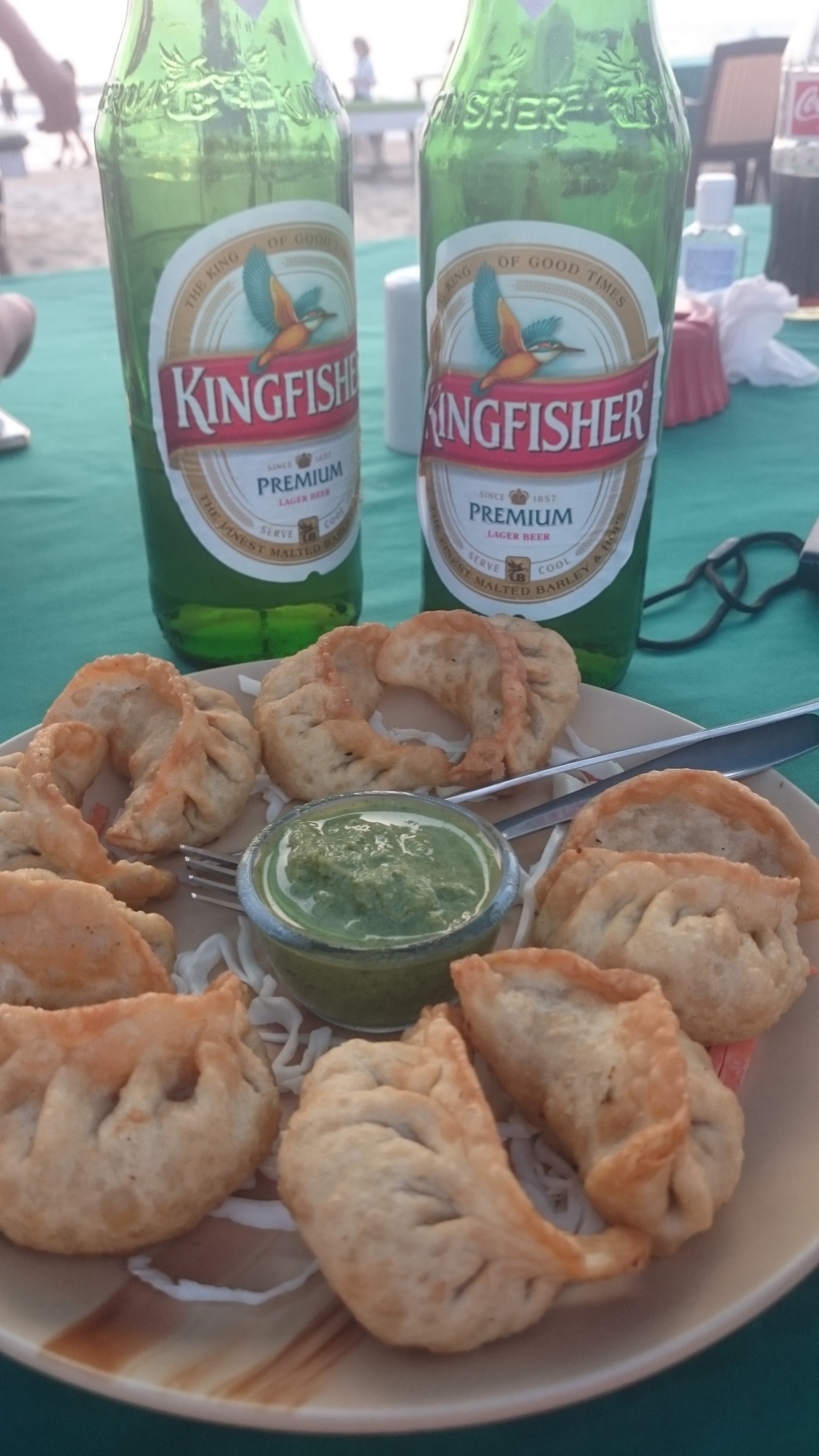 Момо - тибетские жареные пельмешки, довольно крупные и с разной начинкой. Я пробовала разные, и любые идут отлично под местное пенное.