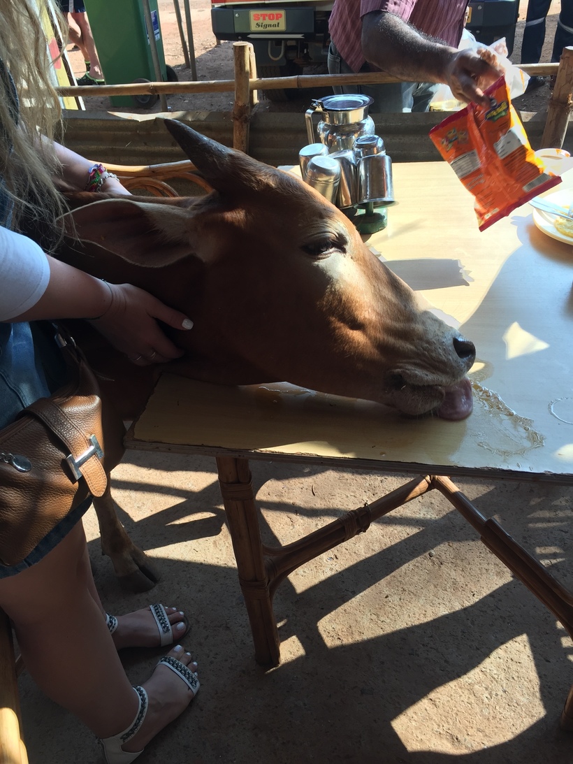 Это, в первую очередь, коровы. Тут у меня произошел полный диссонанс: корова в индуизме считается священным животным, символом матери-прародительницы и изобилия. А по улицам бродят тощие коровки небольшого роста, разных мастей и не очень ухоженные. Чувствуют себя довольно нагло – одна даже боднула меня лбом в кафе у водопада Дудхсагар, когда я не позволила ей выпить мой тростниковый сок.