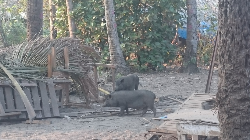 Свинки. Также пасутся на помойках. В отличии от наших розовых хрюшек они здесь черные или пятнистые, щетинистые и очень пугливые - даже поближе не удалось рассмотреть.