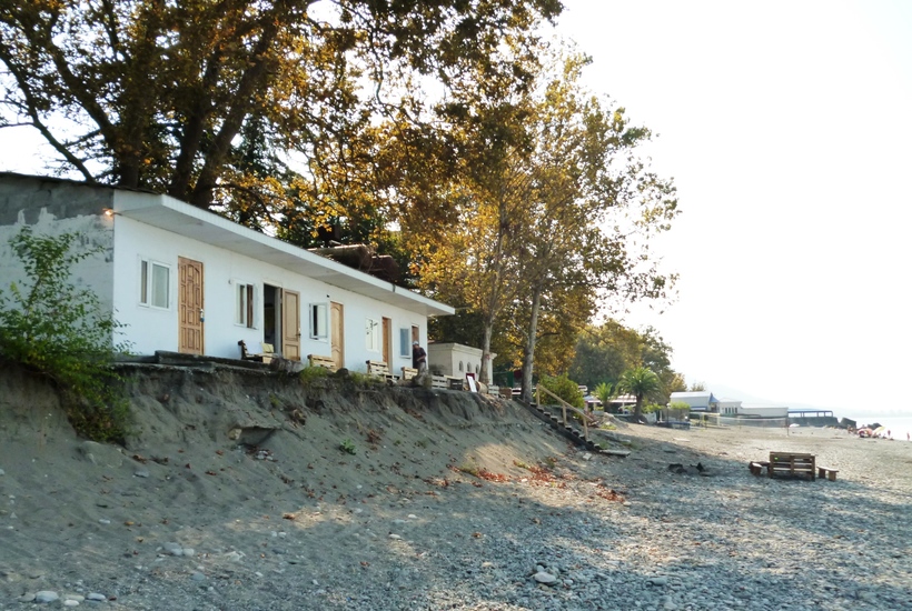 Нам очень понравился Цандрипш - не очень далеко от Сочи, в июле было мало людей, море чистое, пляж почти пустой. Есть красивые белые скалы, несколько кафешек и столовых, рынок. Можно снять комнату в гостевых домах или в отеле прямо на пляже. Если купить что-нибудь в пляжной кафешке - лежаки бесплатно.