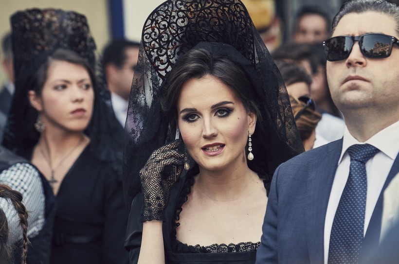 В 17 веке в Испании вошла в моду модель свадебной вуали Мантилья (Mantilla). Прошло 400 лет, но некоторые испанские невесты по-прежнему идут к алтарю в головном уборе, состоящем из подобия кокошника и прозрачной кружевной ткани. Сейчас Мантильи считаются аксессуаром к традиционным платьям, которые испанки надевают во время религиозных праздников или в качестве карнавального костюма. Например, в Валенсии мне довелось встретить немало представительниц прекрасного пола в чёрных кружевных одеяниях и мантильях.