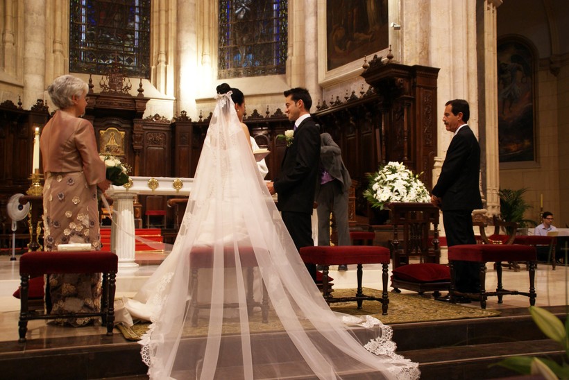 Свадебная Мантилья может быть в несколько раз длиннее самого платья или traje de novia. По традиции жених дарит невесте 13 монет или arras, символизирующих готовность поддерживать её материально. Однако, современные брачующиеся Испании обмениваются монетами, обещая, таким образом, общими усилиями обеспечивать финансовое благополучие семьи. Как и православные, католики носят обручальное кольцо или alianza на безымянном пальце правой руки.