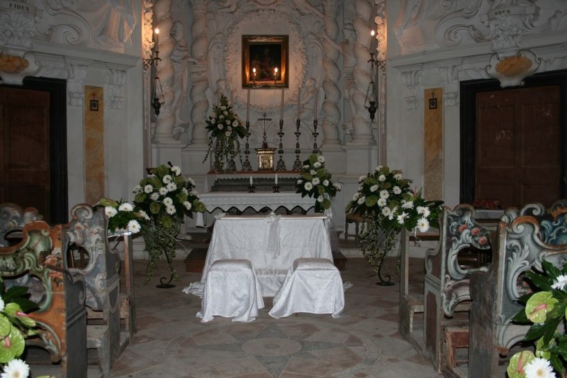Церковь 14 века, украшенная для свадьбы в городке Pergola недалеко от нас