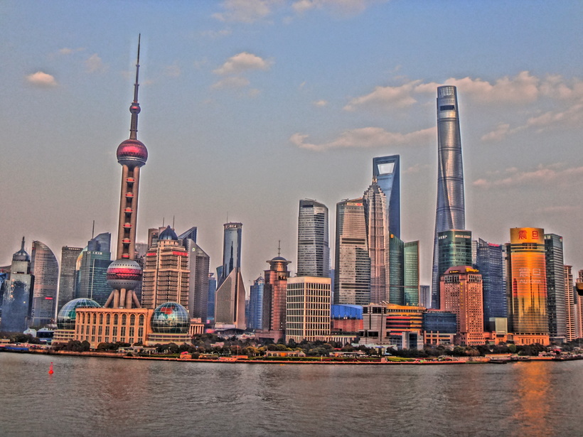 А на другой стороне реки Хуанпу, ровно напротив этой набережной, застроенной особняками в европейских стилях рубежа веков, находится деловой район Пудун с его потрясающим скайлайном.