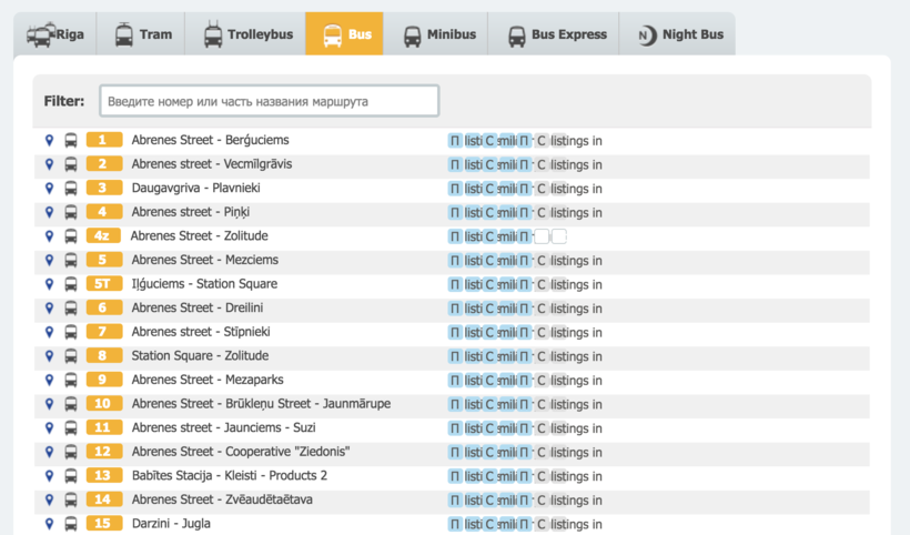 Возвращаясь к автобусам, у них маршрутов ещё больше. Если вы знаете, куда конкретно вам нужно попасть, воспользуйтесь сайтом для гостей Риги, здесь указаны все номера и конечные станции курсирующих по столице автобусов, троллейбусов и трамваев.