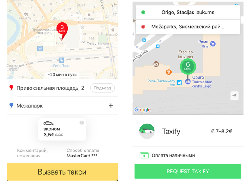 Есть и аналогичные нашим приложения для смартфонов, включая международные. Латвийское приложение ClickTaxi LV позволит вам выбрать нужного оператора, ознакомиться с тарифами и посмотреть на карте ближайшие к вам свободные машины.