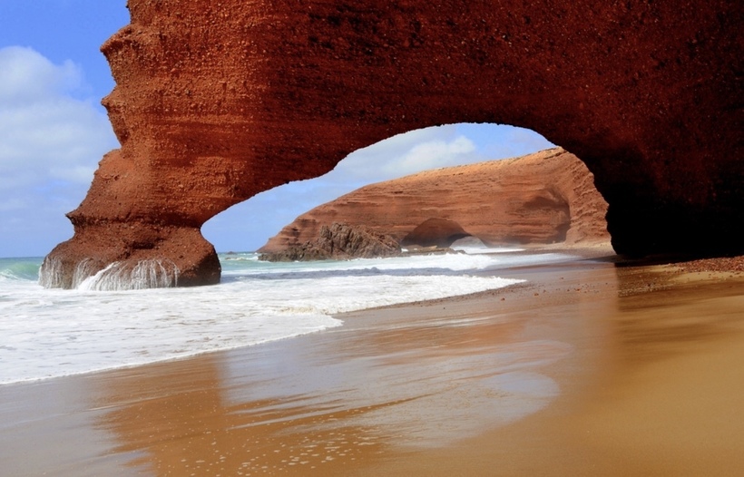 На любом туристическом проспекте о Марокко, Вы, наверняка видели пляж с ярко алым песком и огромными песчаными арками.