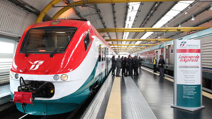 Самый быстрый, удобный и доступный способ добраться от Фьюмичино (аэропорт Рима) до станции Roma Termini - Leonardo Express - скоростной поезд, соединяющий Рим и Международный аэропорт Леонардо да Винчи. Расстояние 37 км поезд преодолевает за 30 минут, при этом экспресс нигде не останавливается. Экспресс отходит каждые полчаса. Стоимость проезда - 14€.