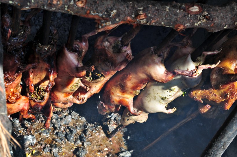 Перуанцы большие любители шашлыка из морской свинки. Они не относятся к этим милым грызунам как к домашним питомцам и разводят маленьких пушистиков в промышленных масштабах исключительно в потребительских целях. Для перуанца куй (мясо морской свинки) такая же привычная пища, как для нас мясо курицы, коровы или свиньи. Едят куй исключительно в обеденное время, запивая большим количеством кока-колы.