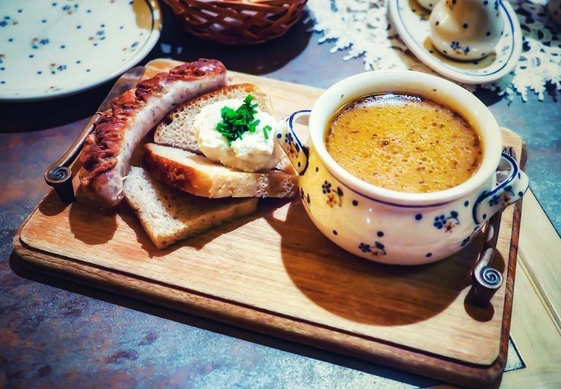 Название, по моему мнению, больше подходит для второго блюда, однако это суп. Супец очень своеобразный, по консистенции - пюре, для его приготовления, насколько я поняла, применяют особую закваску, которая забавно называется "жур". Если сравнивать вкус журека с блюдами русской кухни, то единственная аналогия, которая была мной проведена - рассольник. Блюдо в сети "Zapiecek" подается очень колоритно, в небольшой кастрюльке с крышечкой, в довесок к супу идет вареной яйцо и колбаска, все это очень красиво сервировано, аппетитно пахнет, я съела суп, даже не заметив этого. Было очень вкусно. Также в "Zapiecek"к журеку подают отменный черный хлеб.