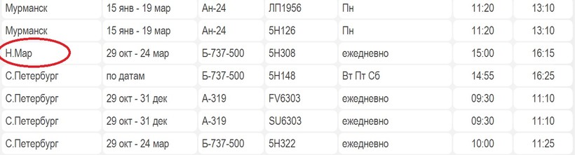 На борт такого самолета с собой можно взять только 10 кг багажа. Из Нарьян-Мара самолеты в Архангельск летают ежедневно, вот расписание с сайта аэропорта: