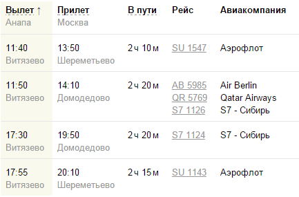 Из Анапы в столицу улетает четыре самолета, время в пути - чуть больше двух часов. Регулярность полетов - ежедневно.