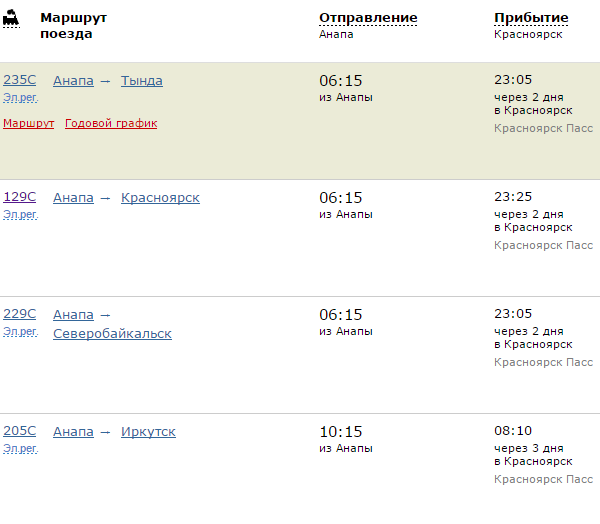 Добраться в Красноярск с Анапы можно также и на поезде.