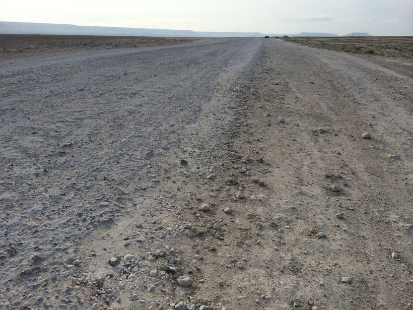 Пейзаж здесь очень однообразный – сотни километров только степь и тушканчики, периодически перебегающие дорогу. Пробок здесь нет, да и взяться им неоткуда. Летом ехать здесь без кондиционера жарковато.
