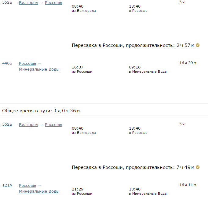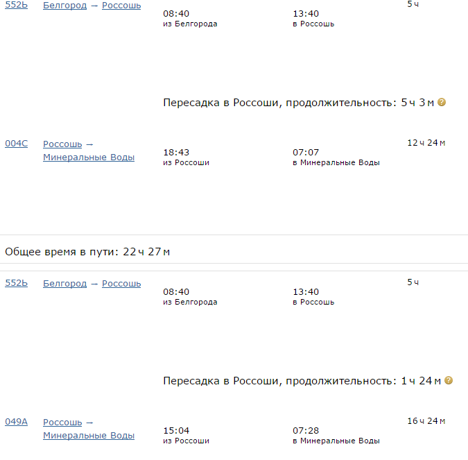 Ехать до Минеральных Вод из Белгорода лучше через Россошь. Я подобрала вам несколько вариантов с пересадками в этом городе, выбирайте лучший для вас.