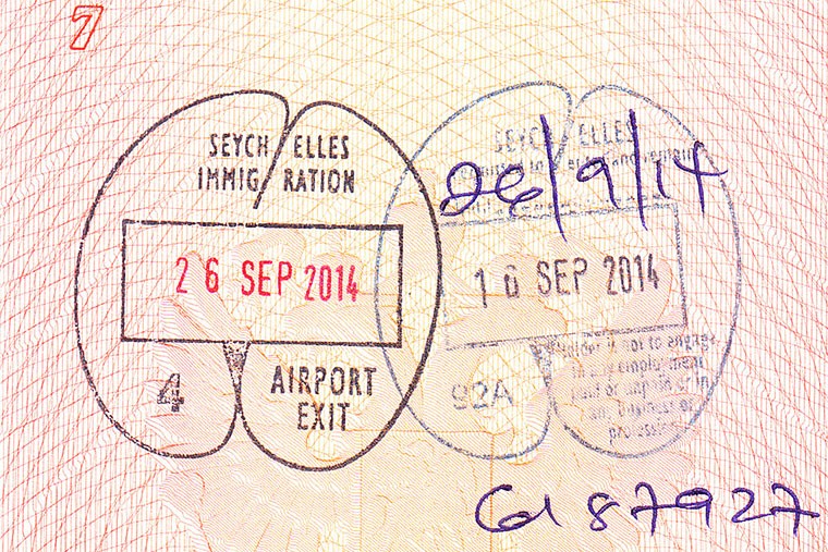 И в итоге офицер поставит Вам в паспорт заветный штамп, который по совместительству и является визой, позволяющей пересечь государственную границу. Сразу обратите внимание, что штамп в виде Coco de Mer, причудливого Сейшельского кокоса, который является визитной карточной этой страны.