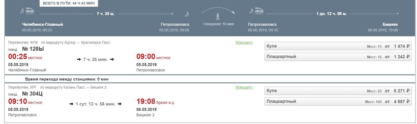 Ниже приведена информация о том, сколько часов вам потребуется, чтобы добраться от Челябинска до Бишкека, а также приведена примерная стоимость проезда (средняя цена билета) на том или ином виде транспорта.