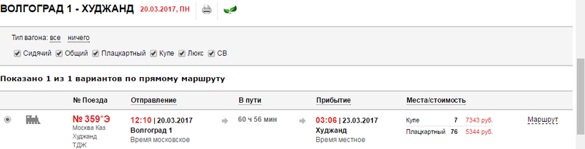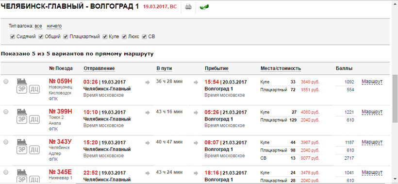 Давайте рассмотрим поездку через Волгоград, так как до Москвы ехать практически столько же. Я подумала и за пример взяла 19 марта, чтобы вы увидели, что в этот день будет 5 рейсов: