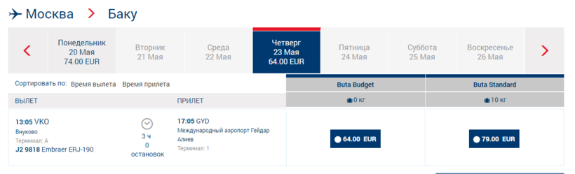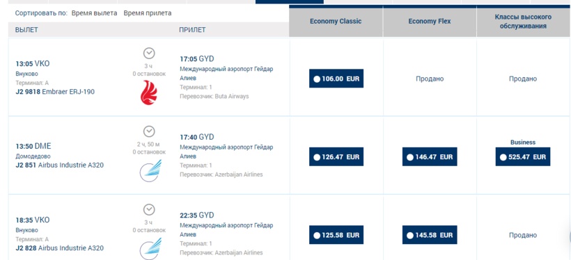 Логичнее и проще всего отслеживать цены и покупать билеты на каких-нибудь таких поисковиках. Но можно и на официальных сайтах Buta Airways или Azal.