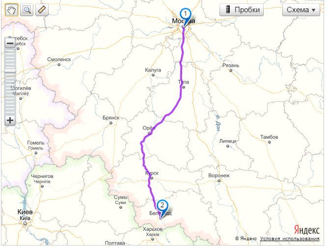 Расстояние между Москвой и Белгородом составляет 578 километров или 359 миль по прямой и 665 километров или 413 миль по автодорогам.