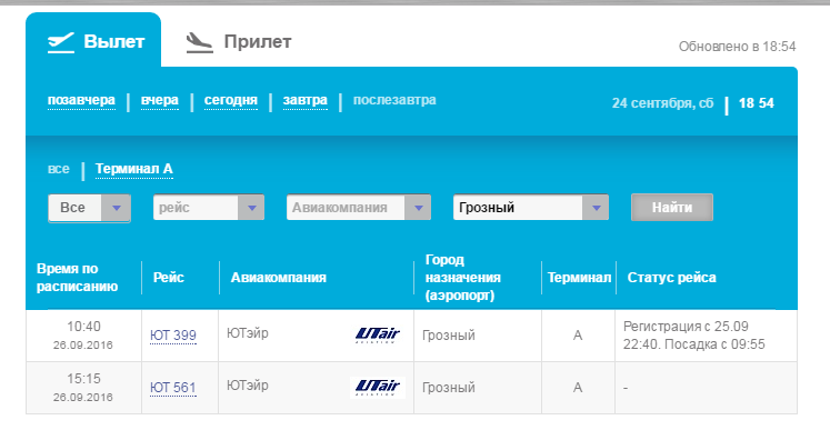 Чтобы узнать, есть ли на нужную дату рейс, достаточно вбить в поиск название городов, и результаты вы увидите сразу.