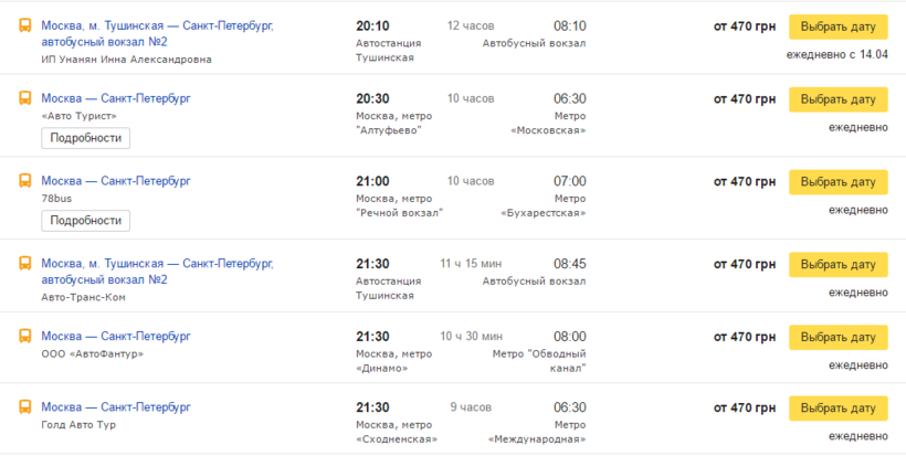 Самым дешевым и легким способом добраться до Санкт-Петербурга является междугородние автобусы. Они отправляются ежедневно в течение всего дня. Состояние и уровень комфорта у всех автобусов одинаковый. Путешествие этим видом транспорта займет у вас от 10 до 12 часов.