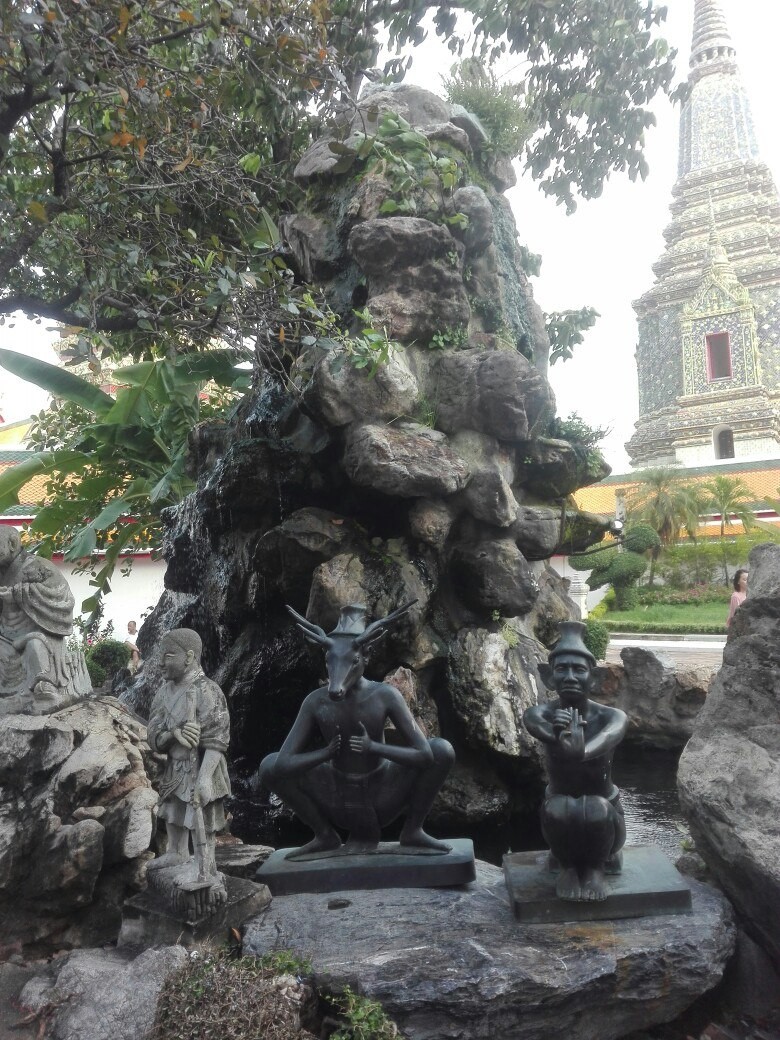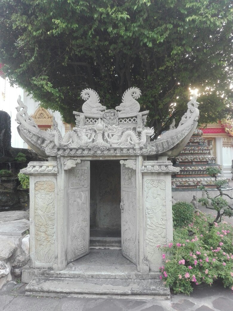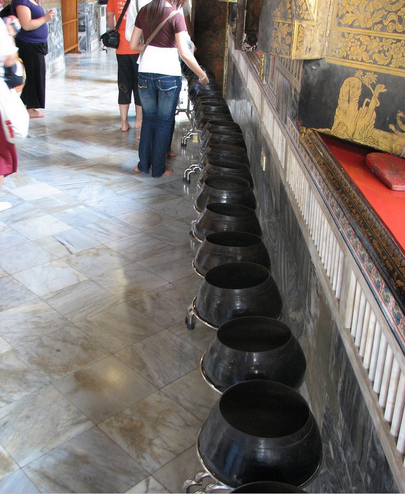 При входе к лежащему Будды есть разменник для денег, где можно разменять купюру на много много монеток - это для того, чтобы при выходе из храма, вы смогли загадать желание, и кинуть монетки в чаши. Якобы звон монет слышит Будда, и помогает в исполнении желания.