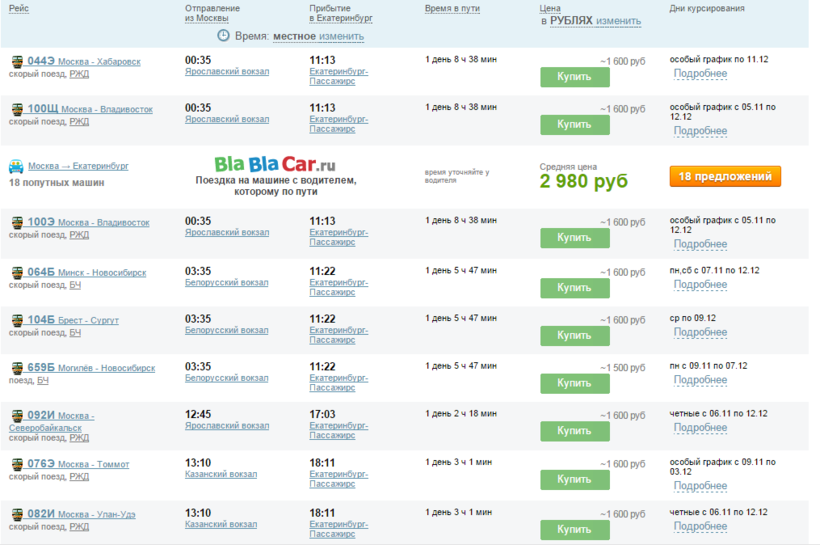 Ниже приведена информация о том, сколько часов вам потребуется, чтобы добраться от Москвы до Екатеринбурга, а также приведена примерная стоимость проезда (средняя цена билета) на том или ином виде транспорта.