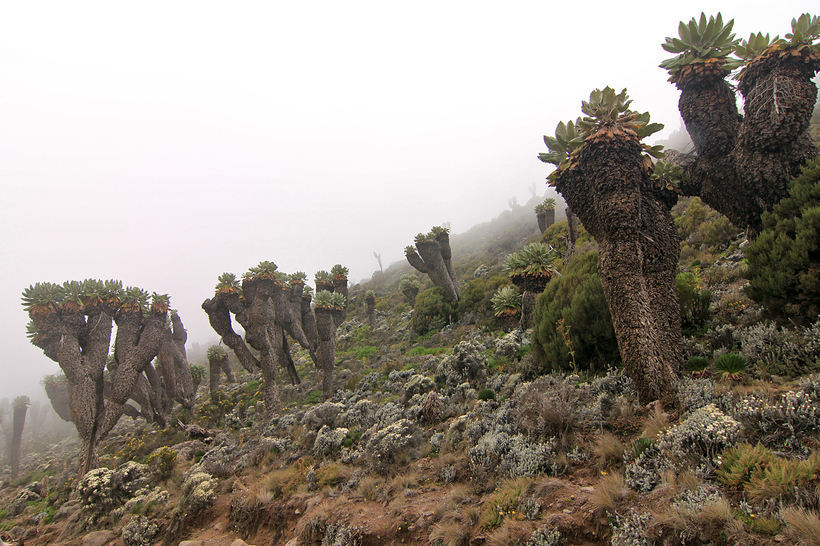 Вершина Килиманджаро (5895м) является высочайшей точкой на Африканском материке, кроме того, это самая высокая отдельно стоящая гора на планете. Этот огромный стратовулкан виден с расстояния более 150 километров. Гора состоит из трех отдельных вершин - Кибо, Мавензи и Шира. Самая низкая и самая древняя – Шира (3962 м). Cчитается, что когда-то это была высочайшая часть Килиманджаро, но в результате взрыва более полумиллиона лет назад от нее осталась гигантская кальдера на высокогорном плато. Сейчас это плато – самая богатая животными часть нацпарка Килиманджаро. Мавензи – следующая по высоте вершина (5149 м), расположена в восточной части Килиманджаро. Ледников на ней практически не осталось, а сама вершина представляет собой причудливое нагромождение скал. Восхождение на нее довольно сложно технически и требует получения специального разрешения, поэтому Мавензи не пользуется особой популярностью. Да и зачем – ведь рядом есть Кибо, гораздо более простая, и вместе с тем, самая высокая часть горы. Это самая молодая из трех вершин, расположена она в центре. Ее главный пик Ухуро (5895) и является заветной целью практически всех туристов, приезжающих на Килиманджаро.