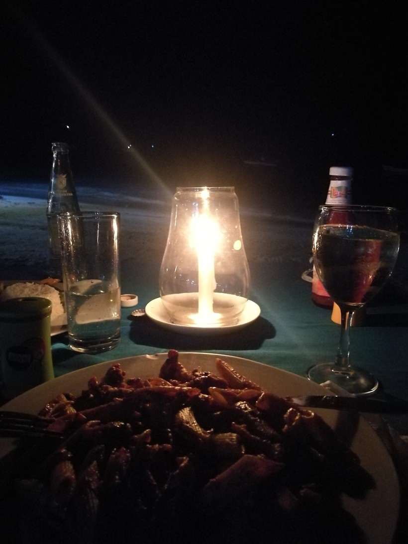 Вечером работники кафе и ресторанов выставляют столики на песок, прямо к воде, и вы можете сидеть, погружая ноги в мягкий, нежный белый песочек..