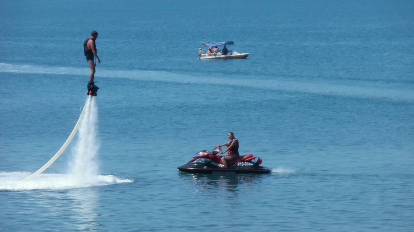 - Водные мотоциклы — их просто дают в прокат прямо на пляже, стоимость 200–350 турецких лир на час-два, не дают несовершеннолетним. Если, например, вашему сыну 16–17 лет, и он в очень хорошей физической форме, ему могут дать покататься. Более маленькие дети и те, кто боится управлять, могут сидеть сзади.