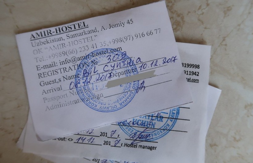 Итак, что это такое? По закону в Узбекистане туристы разных стран могут находиться ограниченное число дней, после которых им надо сделать временную регистрацию в определенном городе. Расскажу, как это было у меня. Мы приехали в Ташкент с планами поехать далее в Самарканд, Бухару и Хиву. Конечно же, мы бы не уложились в пять дней, которые можно мне находиться в стране как гражданке Казахстана и три дня, которые можно находиться гражданам России - моим друзьям. Поэтому мы вместе с родственницей нашей подруги, которая гражданка Узбекистана (это обязательно) пошли в местный АВИР (это центр, который занимается всеми визовыми вопросами) и там отдали наши паспорта и паспорт женщины, которая нас регистрировала у себя на время нашей поездки. За нас заполнили кучу непонятных бумаг (это платная услуга для туристов, которые ничего не понимают в узбекской бюрократии) и заплатили еще что-то около 5 долларов как официальный взнос. Наши паспорта были там около 5 дней, которые мы не хотели ждать в Ташкенте и уехали путешествовать по стране. Но при этом взяли с собой их ксерокопии на случай проверок полиции в дороге, потому что такие бывают, но нам повезло и нас ни разу не проверили. Вообще я так далеко уезжать без документов не советую, потому что проверять вас могут на каждом шаге и при каждом спуске в ташкентское метро.