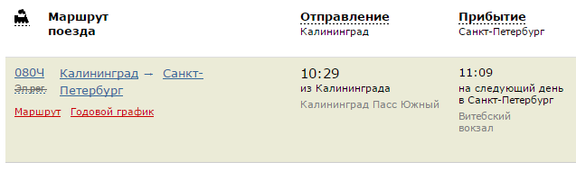 С Калининграда отправляется только один поезд в 10.29, в пути он сутки и прибывает на следующий день в культурную столицу в 11.29. Он комфортабельный, ехать удобно, работает печка в зимний период и кондиционер - в летний. Также можно заказать чай, кофе.