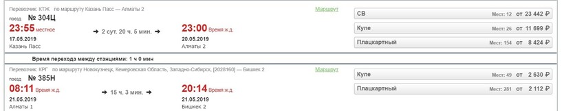 Данный поезд идет через территорию Казахстана. Также вы можете «домчаться» по железной дороге до Бишкека с пересадкой. Ее сделайте, например, в казахском городе Алматы. Вот один из вариантов.