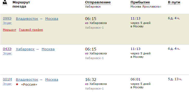 Поезда по очереди отправляются через день, то есть получается, что выехать можно в любой день недели. Поезда отправляются со станции Хабаровск 1 в 06.15 и 16.32.