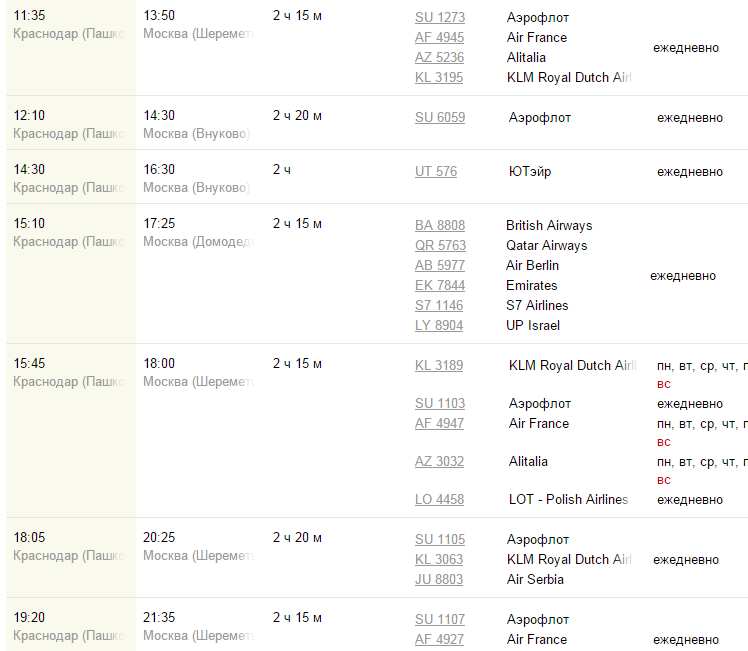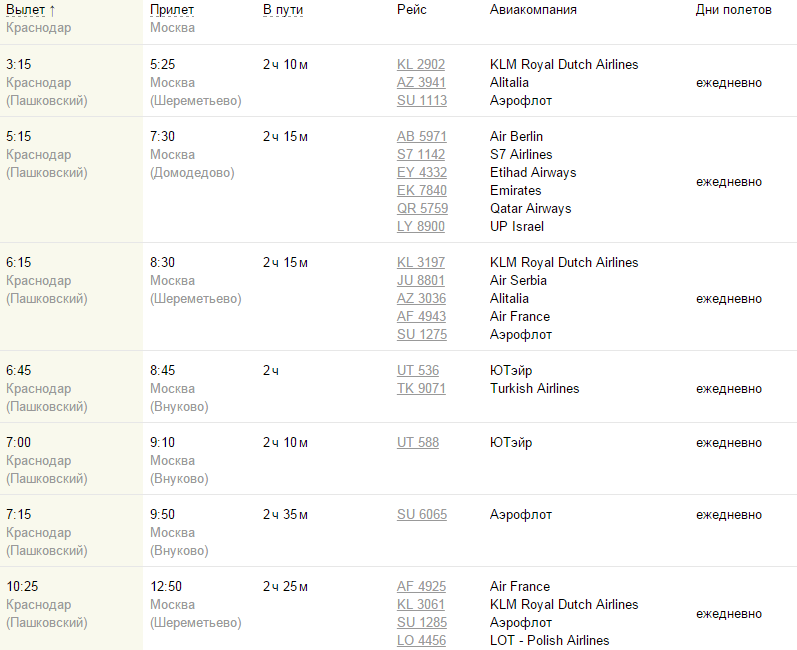 Из Краснодара в Москву отправляется очень много авиа рейсов различных авиа компаний.