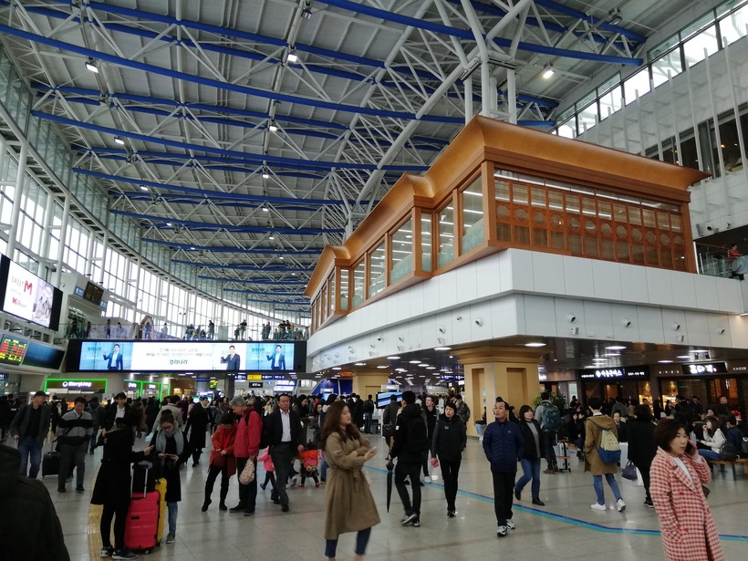 После остановки в Сеуле наш путь лежал в Пусан. Чтобы не прыгать с чемоданами по ступеням метро, добирались до Seoul Station на автобусе.