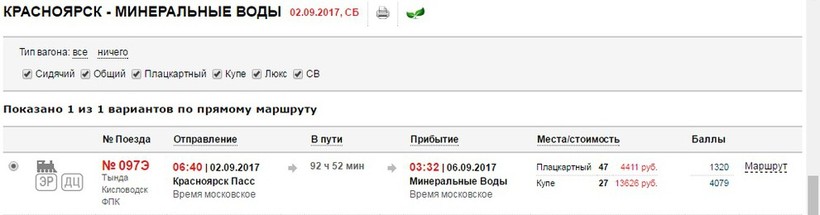 Опять-таки, чтобы сесть на поезд дальнего следования, то придется плыть на пароме до Красноярска, так что это займет 4 дня и 18 тысяч рублей. Только потом можно будет что-то мудрить, хотя, в принципе, все просто, потому что пару раз в неделю ходит прямой состав в Минеральные Воды. Отправка рано утром в 06:40, ехать, конечно же, долго, поэтому четыре дня дороги вам обеспечены.