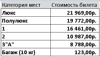 Расписание и стоимость билетов