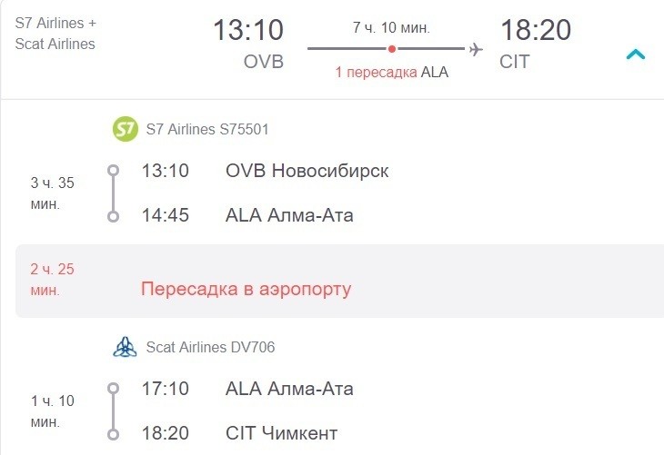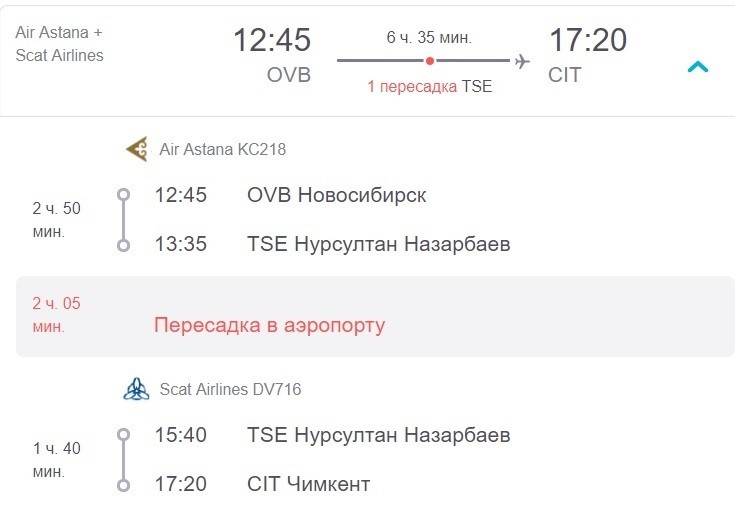 В остальные дни до Шымкента можно добраться только с пересадкой. Ее сделайте, например, в Нурсултане (бывшая Астана). Вот один из вариантов.