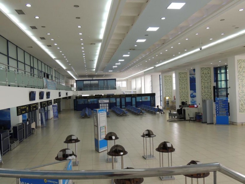 Международный аэропорт в Фергане небольшой и состоит из одного терминала. Снаружи он выглядит так.