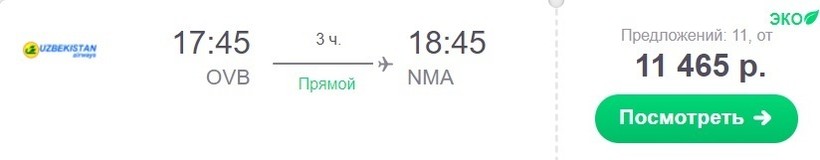 Стоимость авиабилета до Намангана — от 11500 рублей.