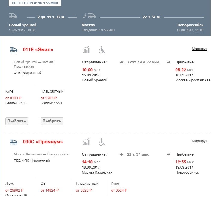 Ниже приведена информация о том, сколько часов вам потребуется, чтобы добраться от Нового Уренгоя до Геленджика, а также приведена примерная стоимость проезда (средняя цена билета) на том или ином виде транспорта.